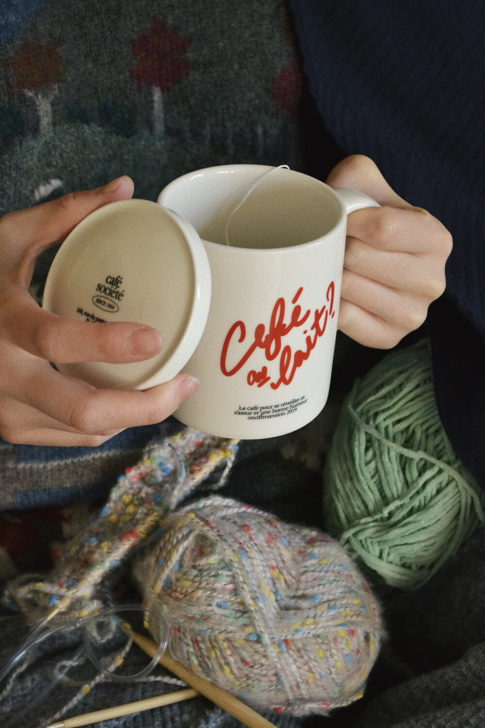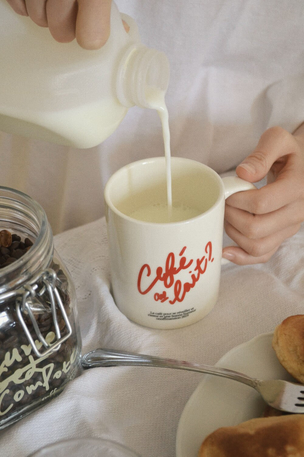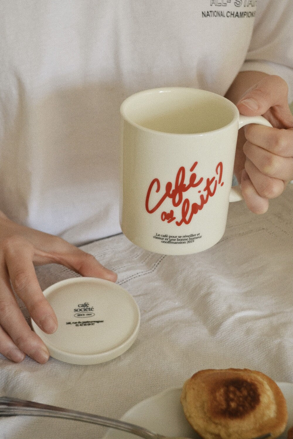A mug that reminds you of a warm cafe latte. Onoff Mansion's unique, rough French hand writing has a unique and artistic feel.