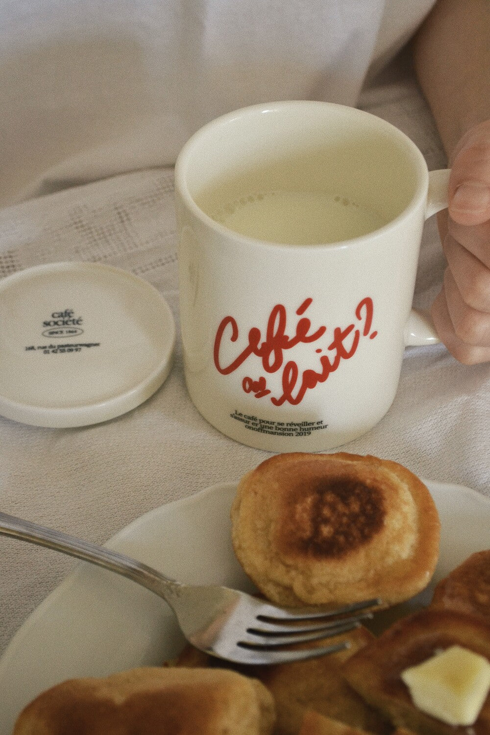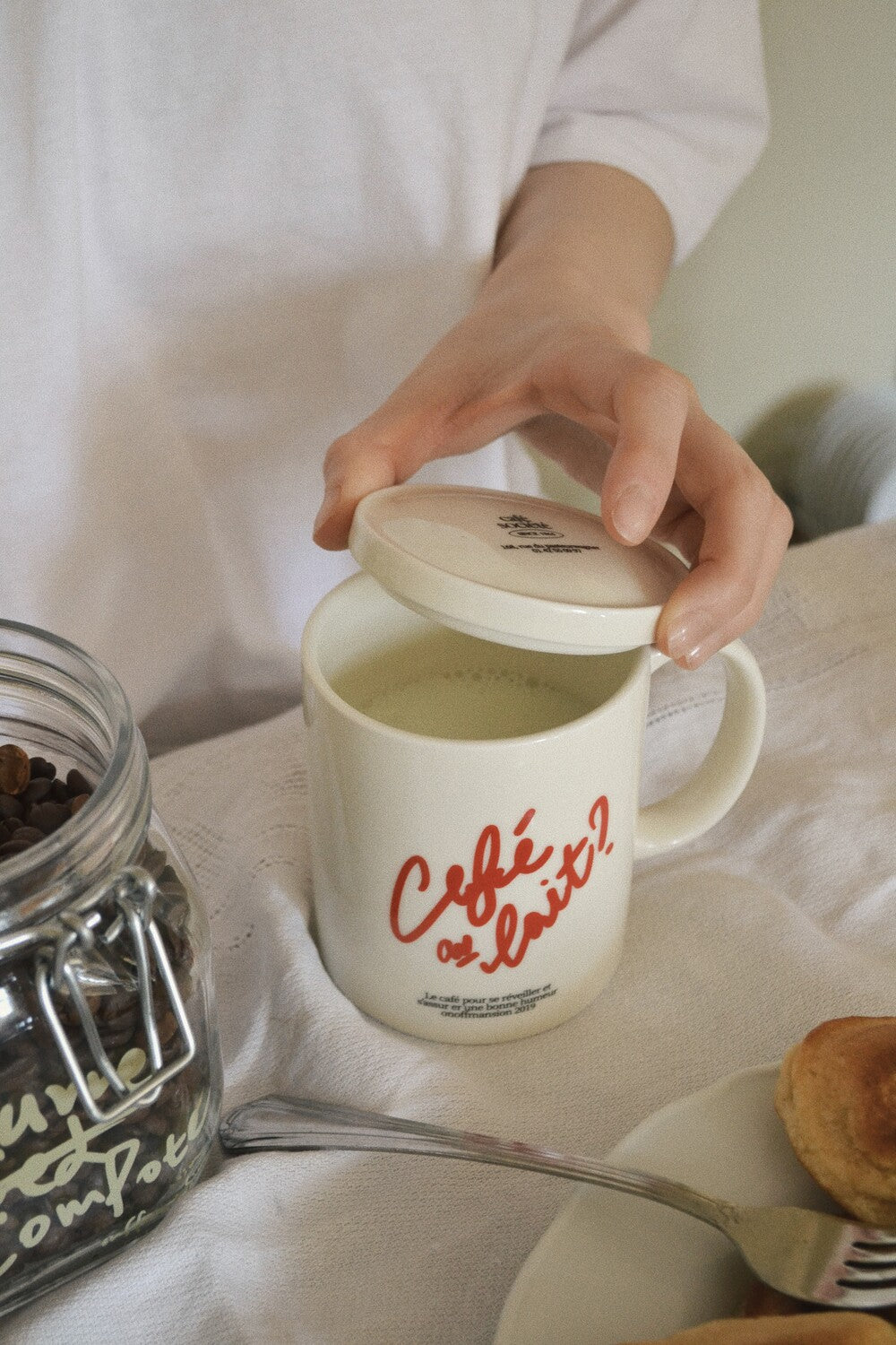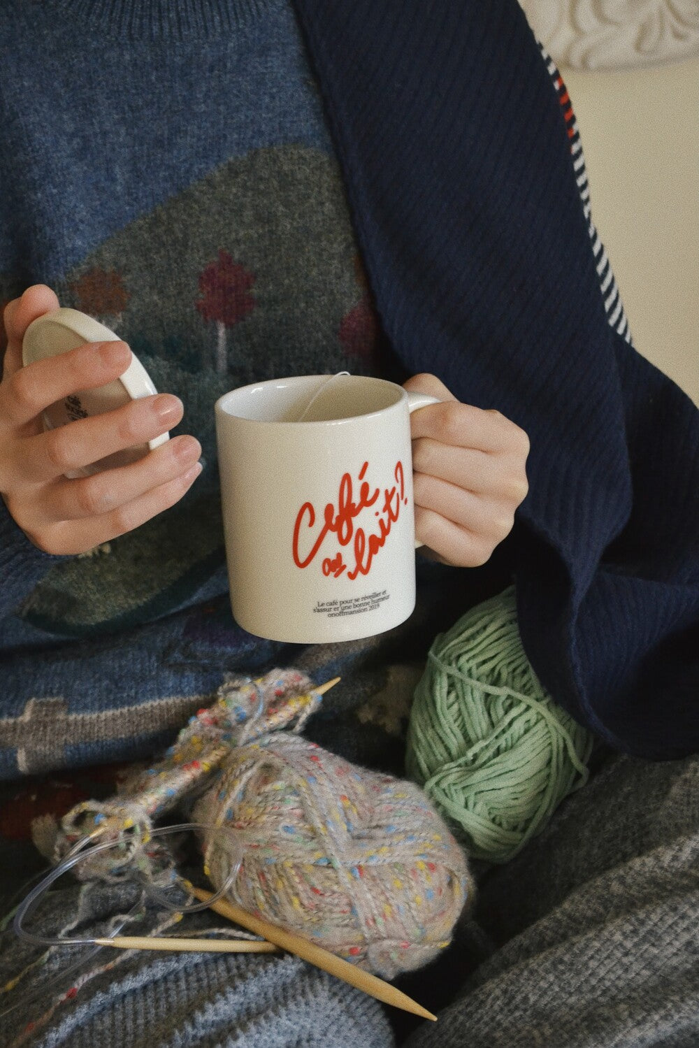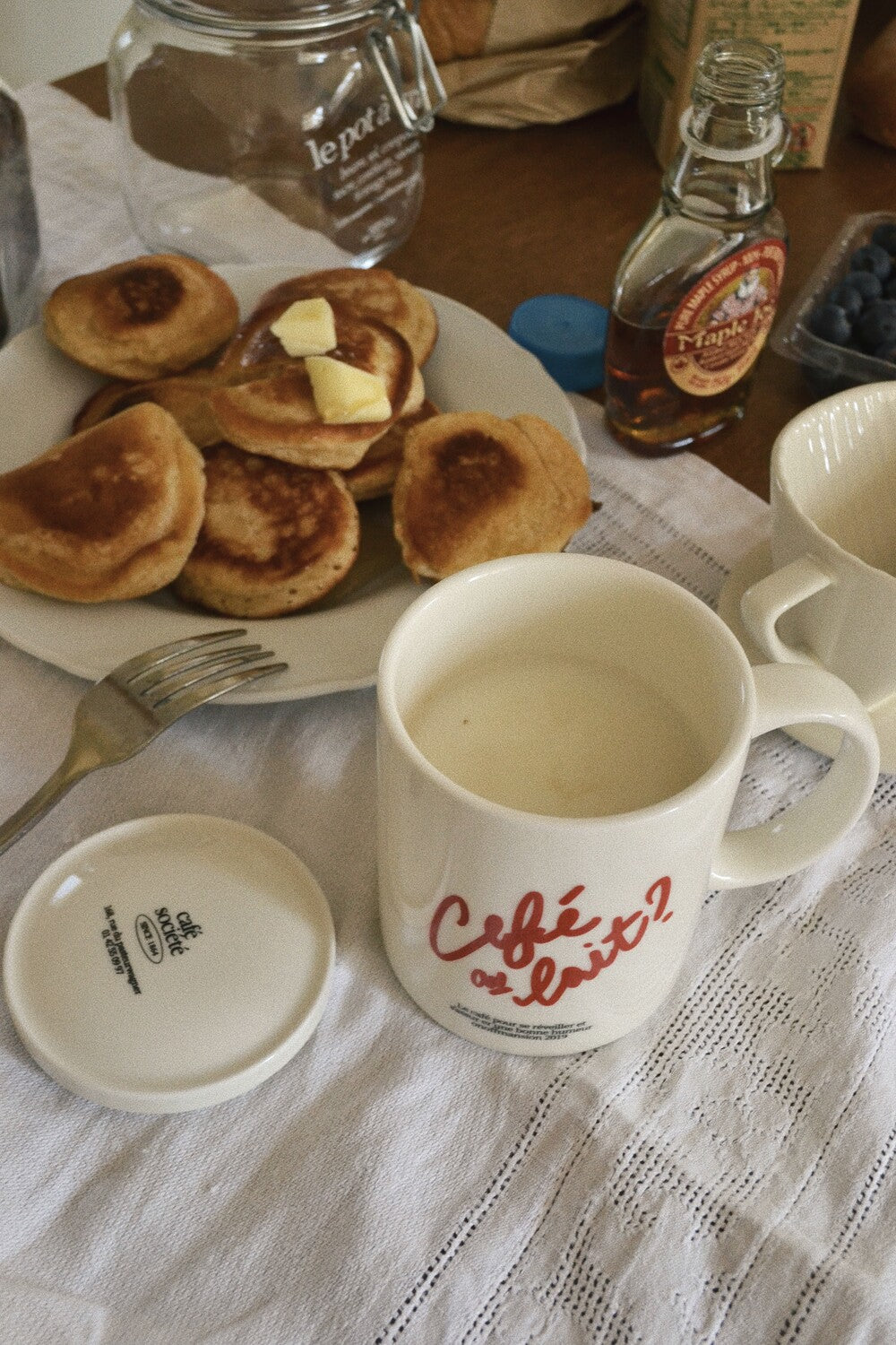 A mug that reminds you of a warm cafe latte. Onoff Mansion's unique, rough French hand writing has a unique and artistic feel.