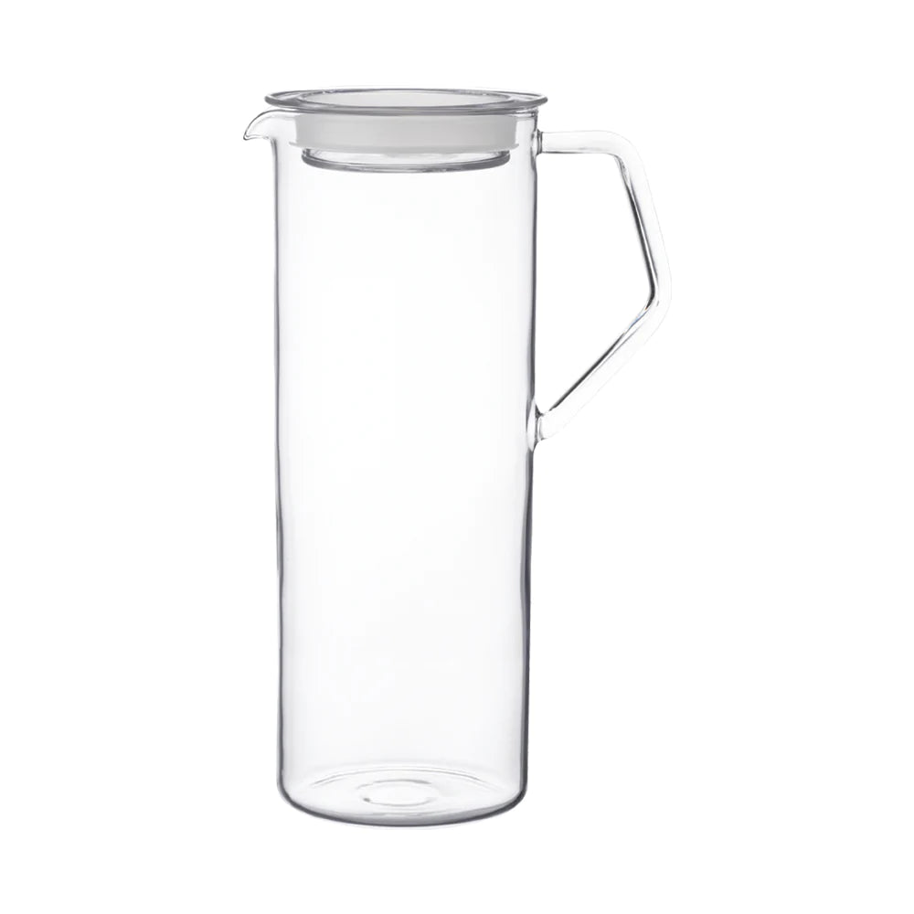 The KINTO CAST Water Jug 1.2L will hold your lemon water or sangria in style with its clean and crisp look. The lid has a silicone ring that fits snugly on the jug and with a twist, will let your beverages flow out silky smooth. The glass is heat-resistant - allowing you to serve your famous hot apple cider whenever you please.