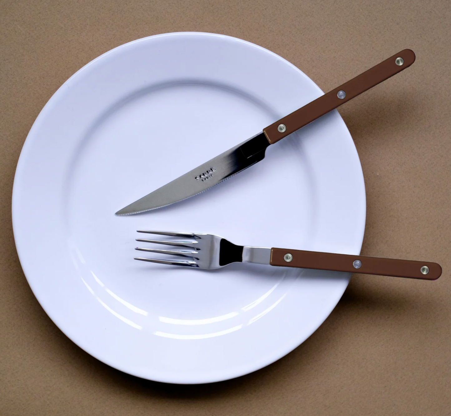 Made from high-quality 18/10 stainless steel for durability and shine, each piece is paired with an acrylic handle that adds elegant colour and contrast. Rivet details offer a classic, rustic appeal—like something you’d find in a cozy café or terrace.