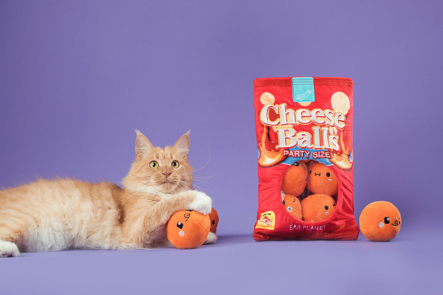 Ear Planet Classic Cheese Ball Burrow Snuffle Plush Catnip Toy (Cat version)