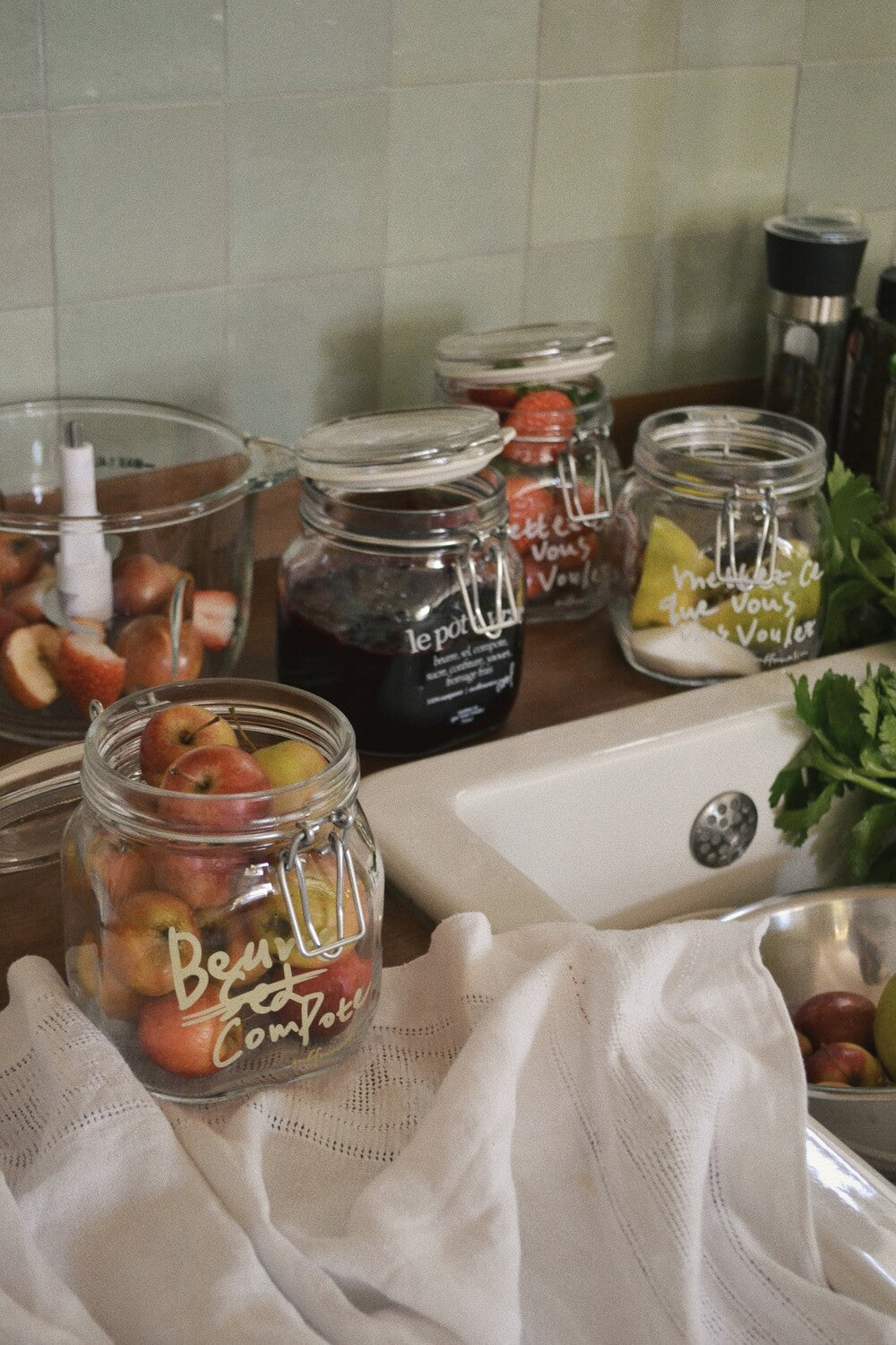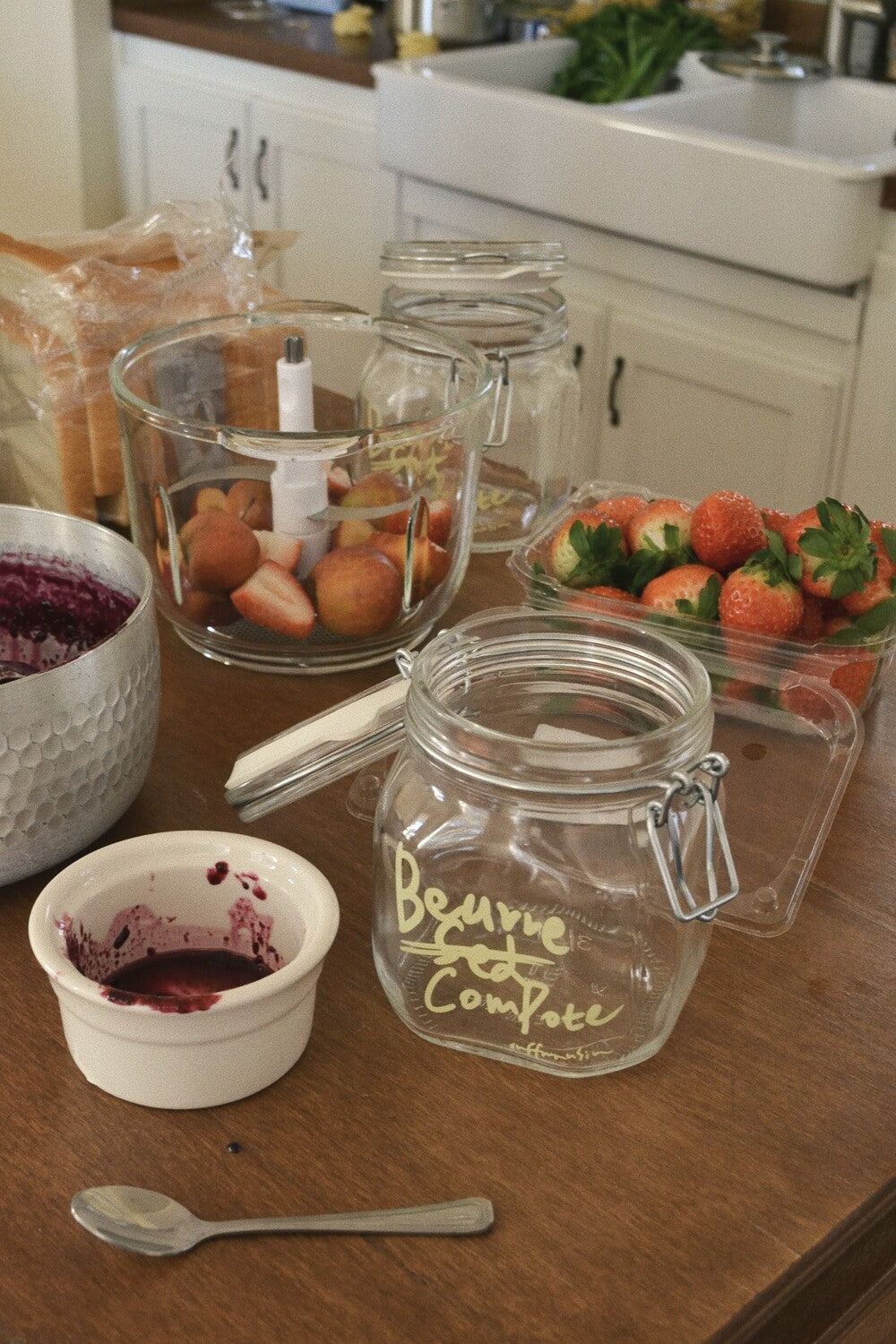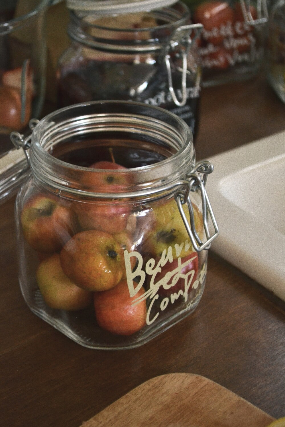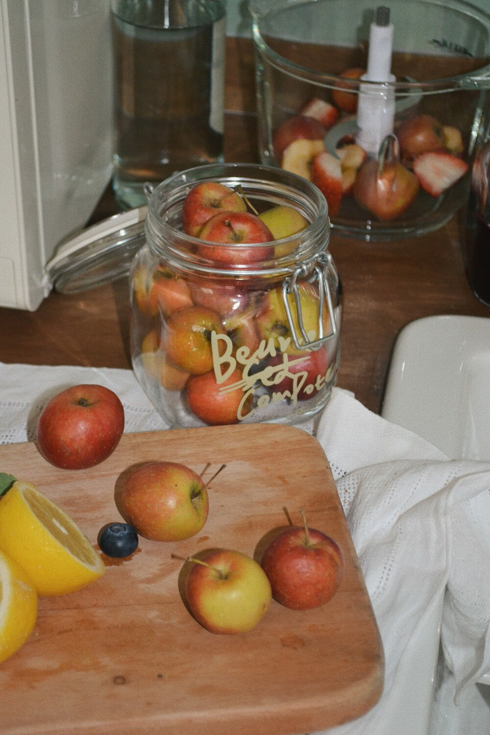 Many of the unwrapped products are packed in reusable glass bottles at En Bach's stores in France. Inspired by this, the Pido bottle, made with Onof Mansion's unique hand lettering design, was produced by the original Italian brand 'Bormioli'. It can be stored with compote, beans, pasta, Greek yogurt, fruit, etc., and can be reused for a long time at any time.
