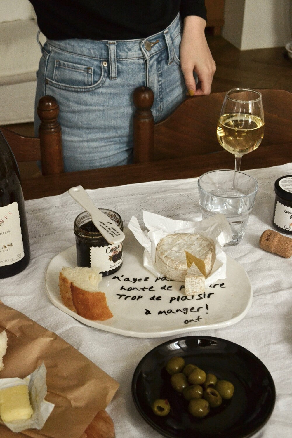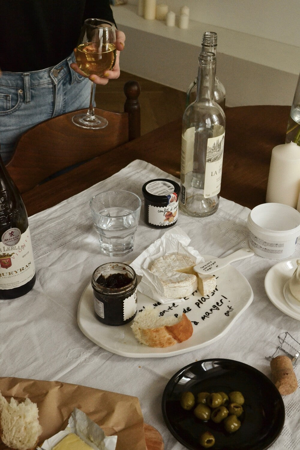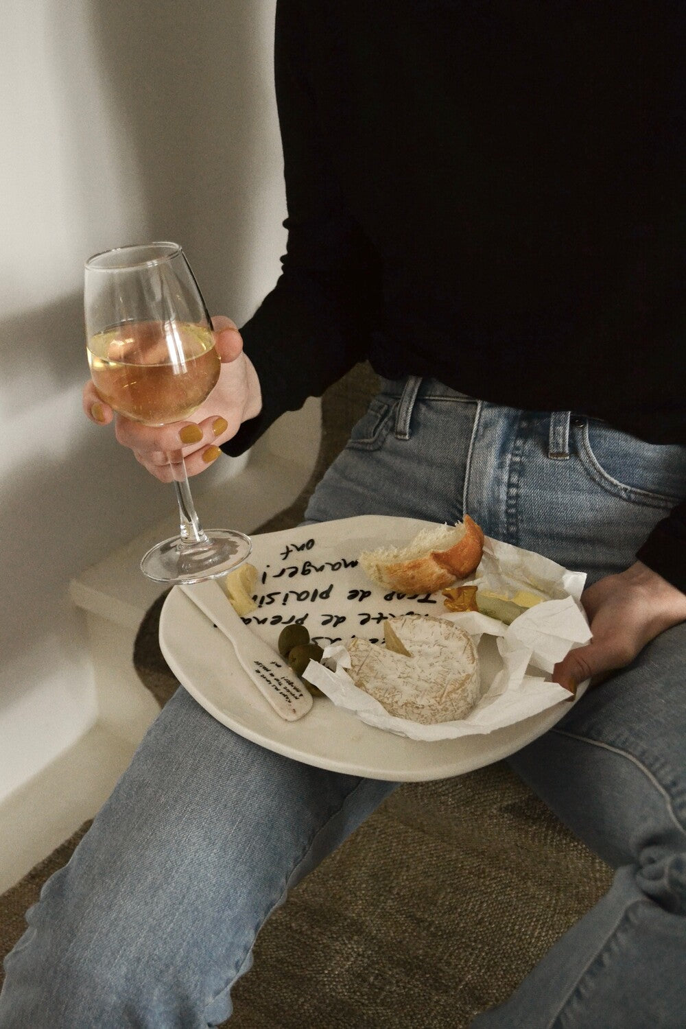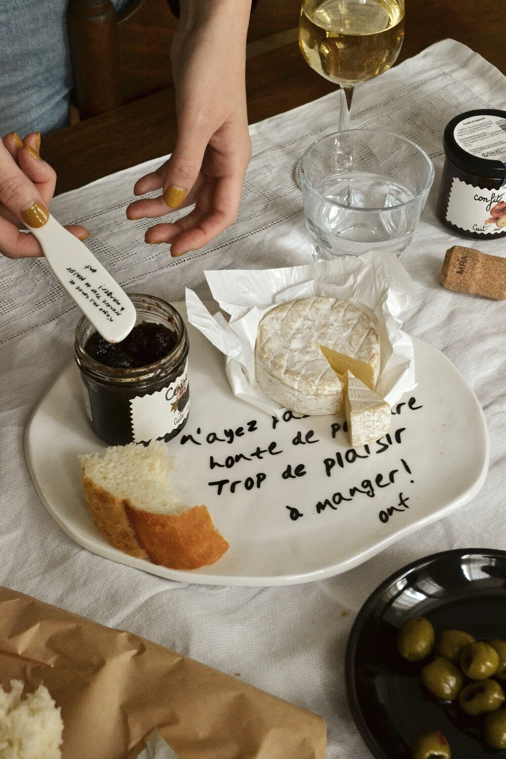 The 100% hand-crafted Gallet Plate & Knife Set reveals the sensual handprints of the potter, and features rough and natural lines. Milk and toast for breakfast, coffee and dessert for lunch, and cheese, butter, and charcuterie to accompany your favourite wine in the evening. With two designs, various plating is possible according to individual taste.