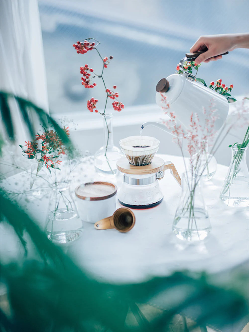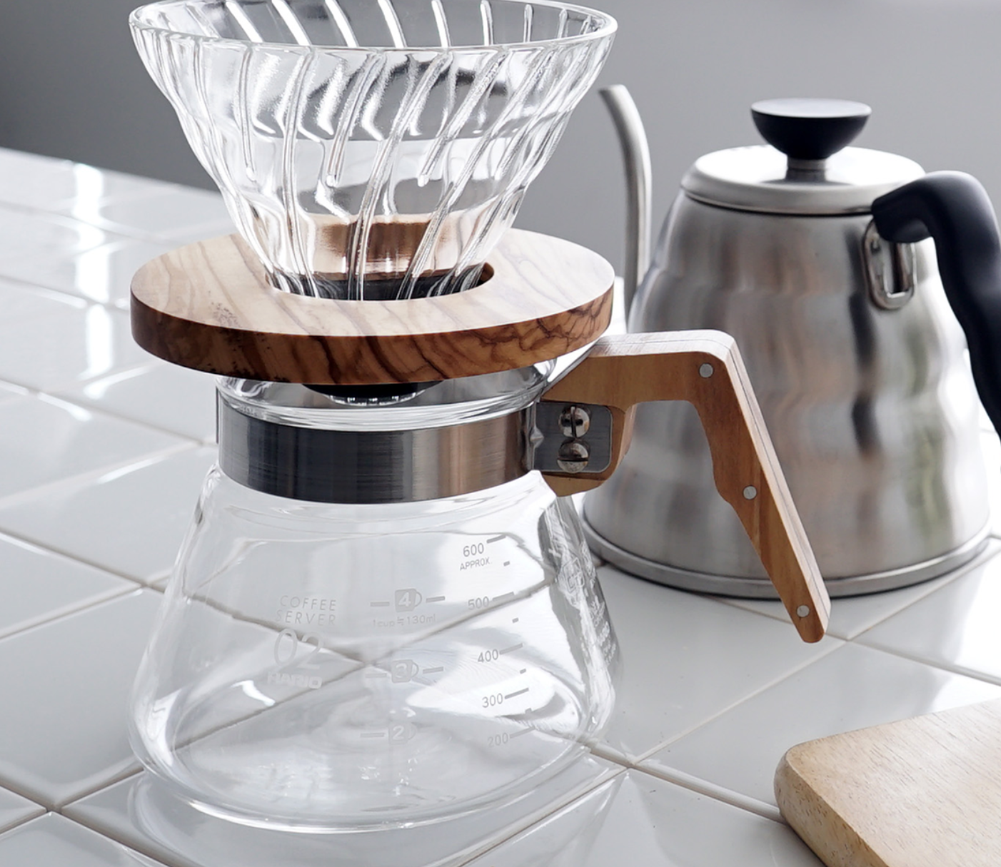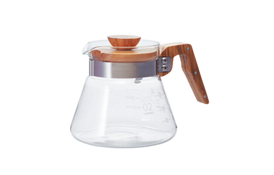 Take the Hario V60 Range Server, throw it at a olive wood tree (figuratively, not literally), add a wood carving Samurai, and this is what you get. The highest quality Japanese glass, a handcrafted olive wood handle, and simple functionality provide you with one of the most drool-worthy coffee servers available. An olive wood lid is provided keep heat in and prevent spills, and it has a 600ml capacity; enough to hold coffee warmly for 2 or 3 people.
