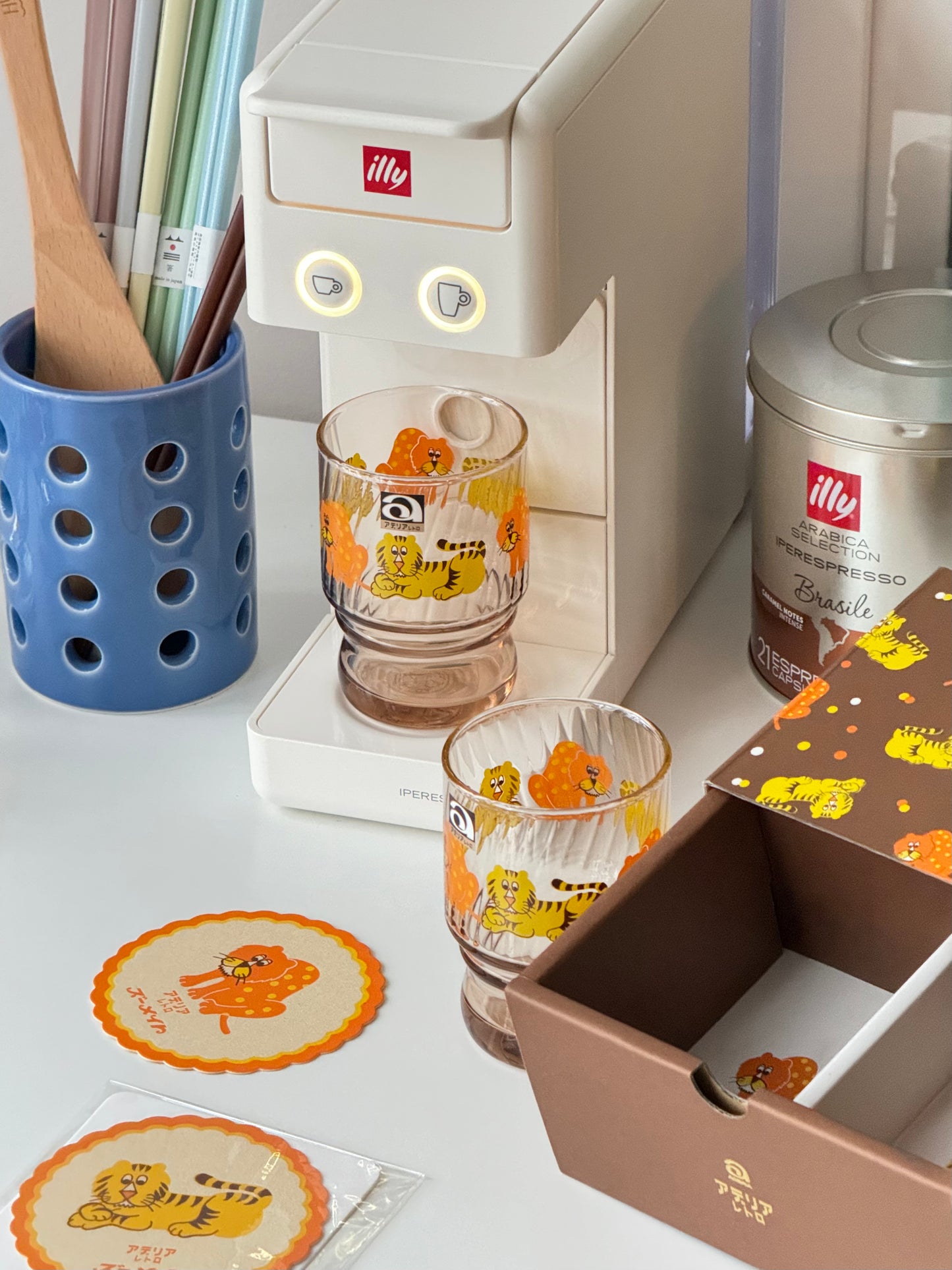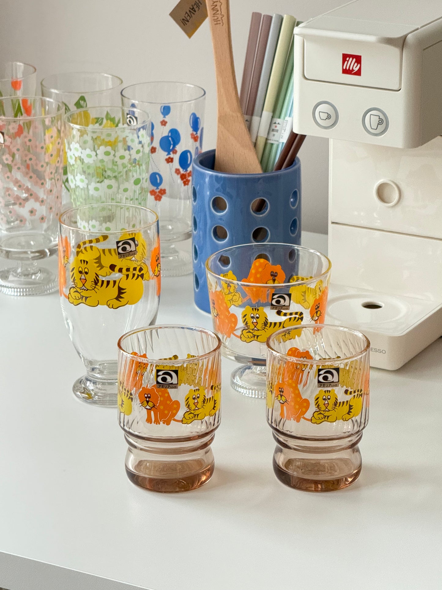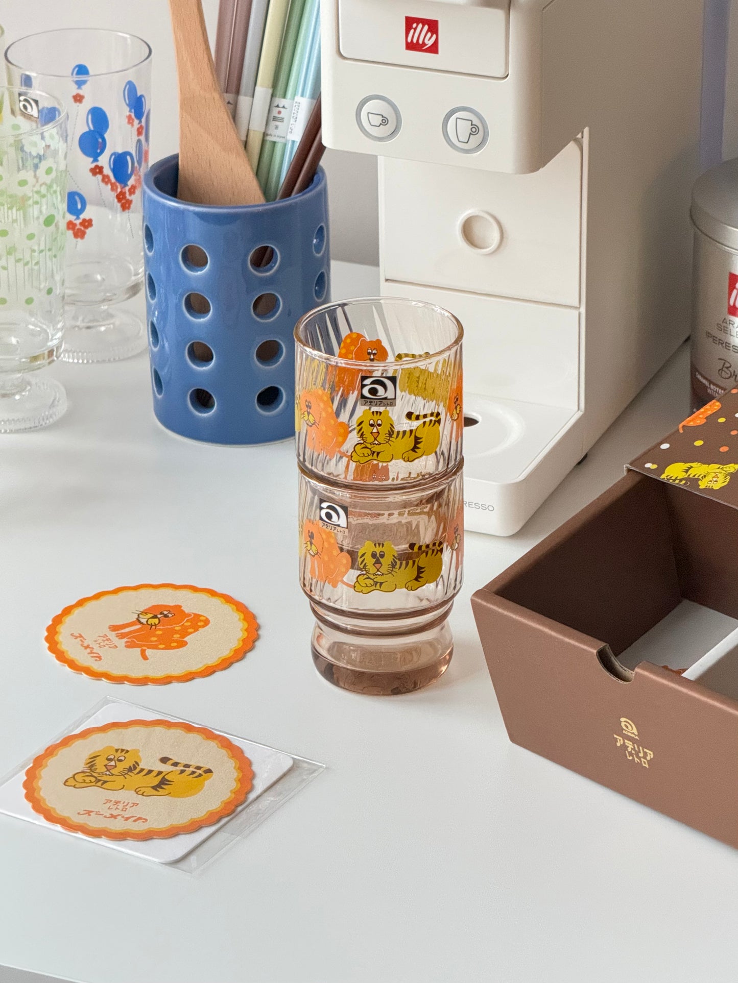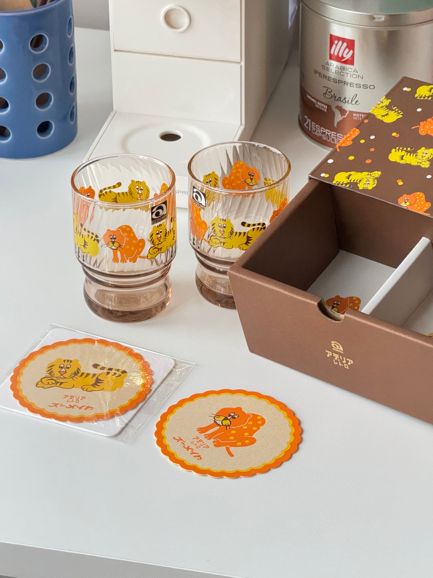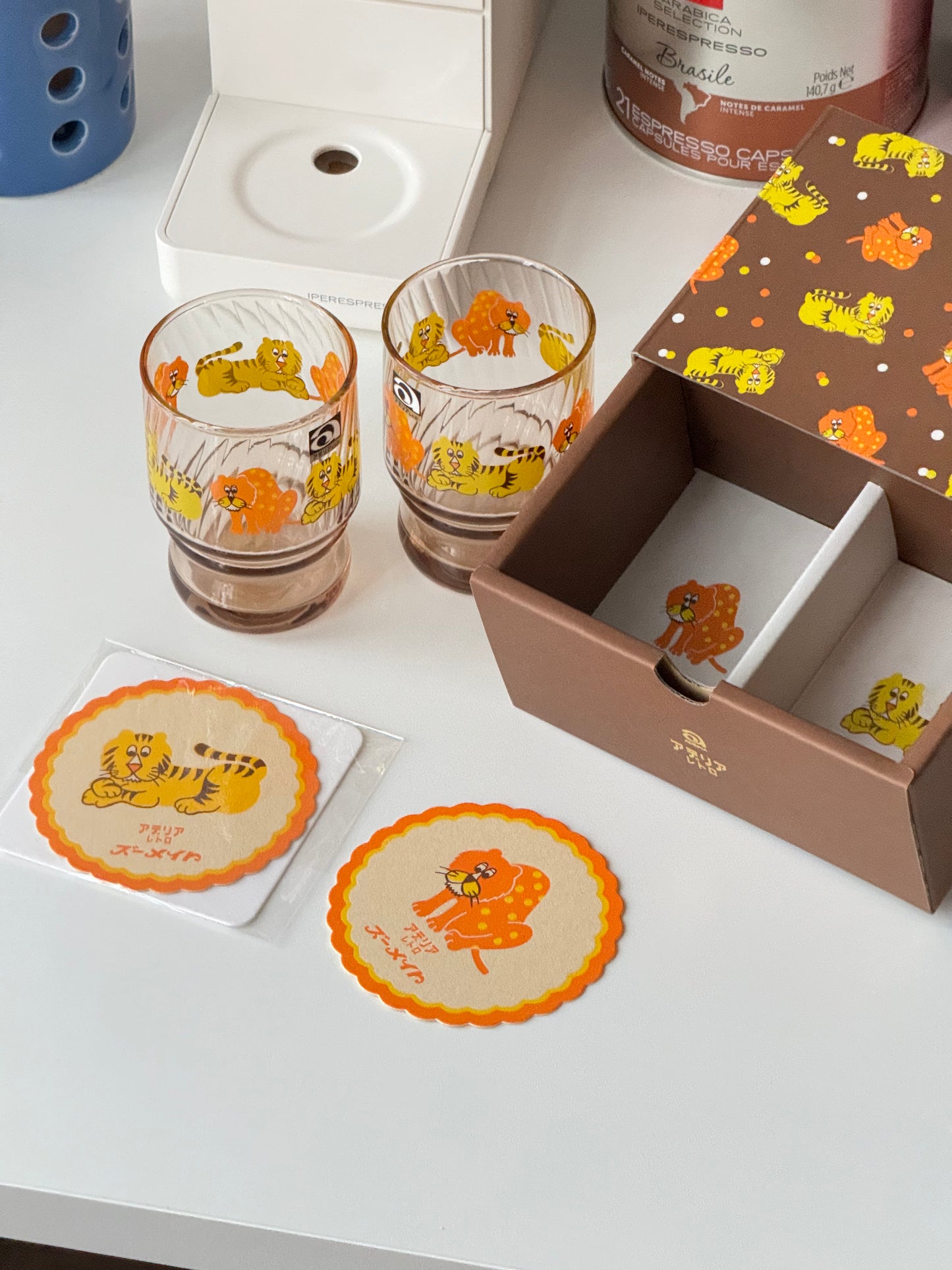 This new edition has a tiger and a leopard showing their charming expressions, and brighten your heart every time you use this adorable set of glasses.