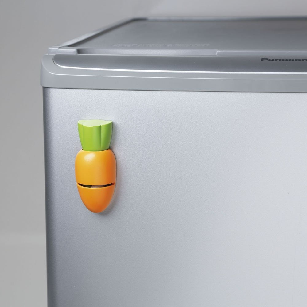 Knife sharpener in cute carrot shape. It also includes a magnet that can be attached on the refrigerator for storage.