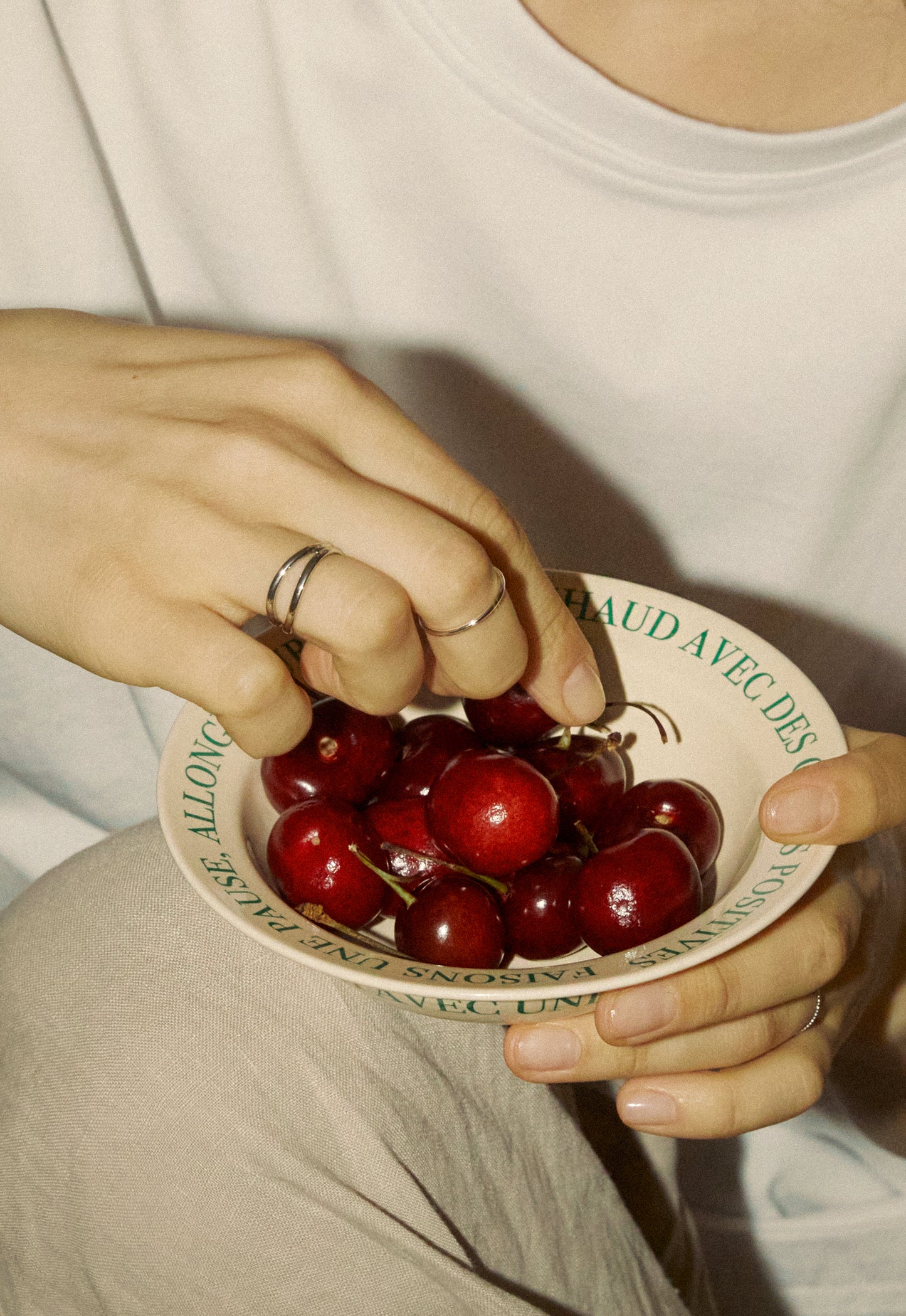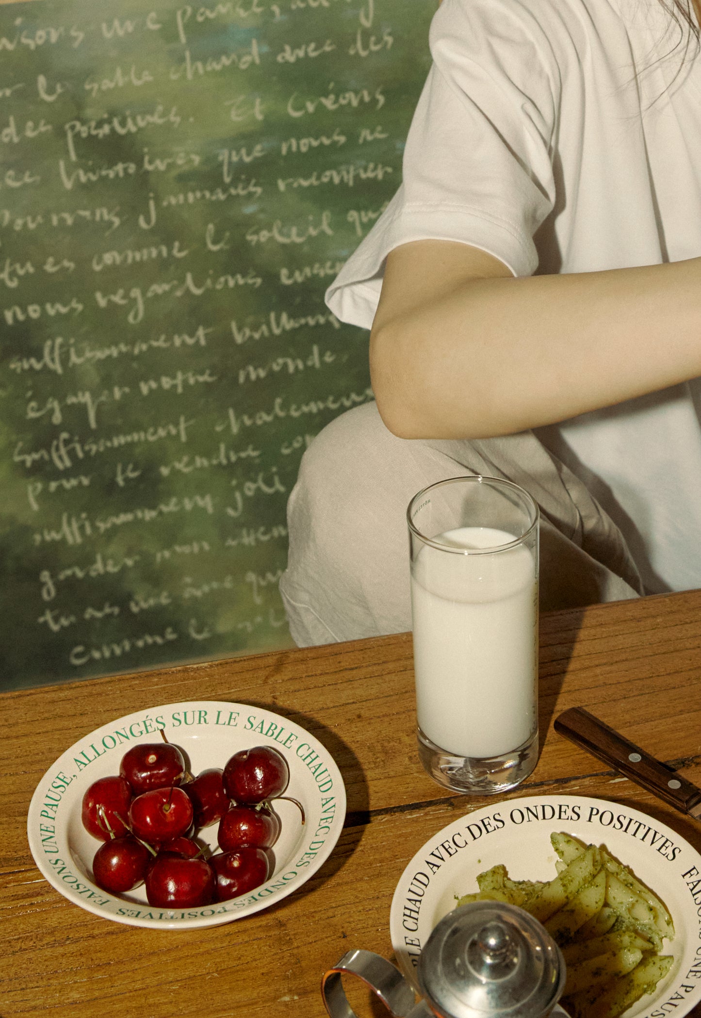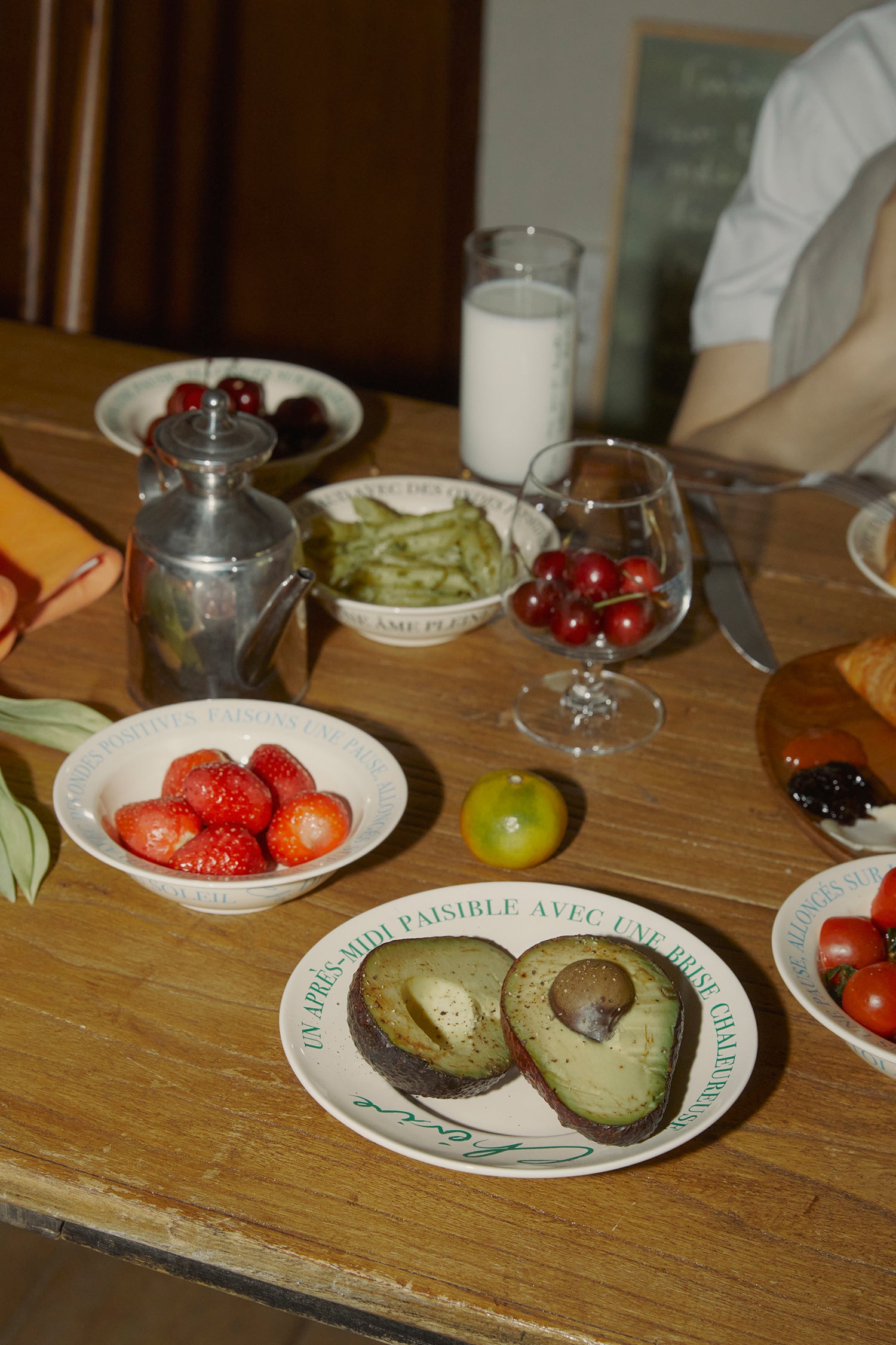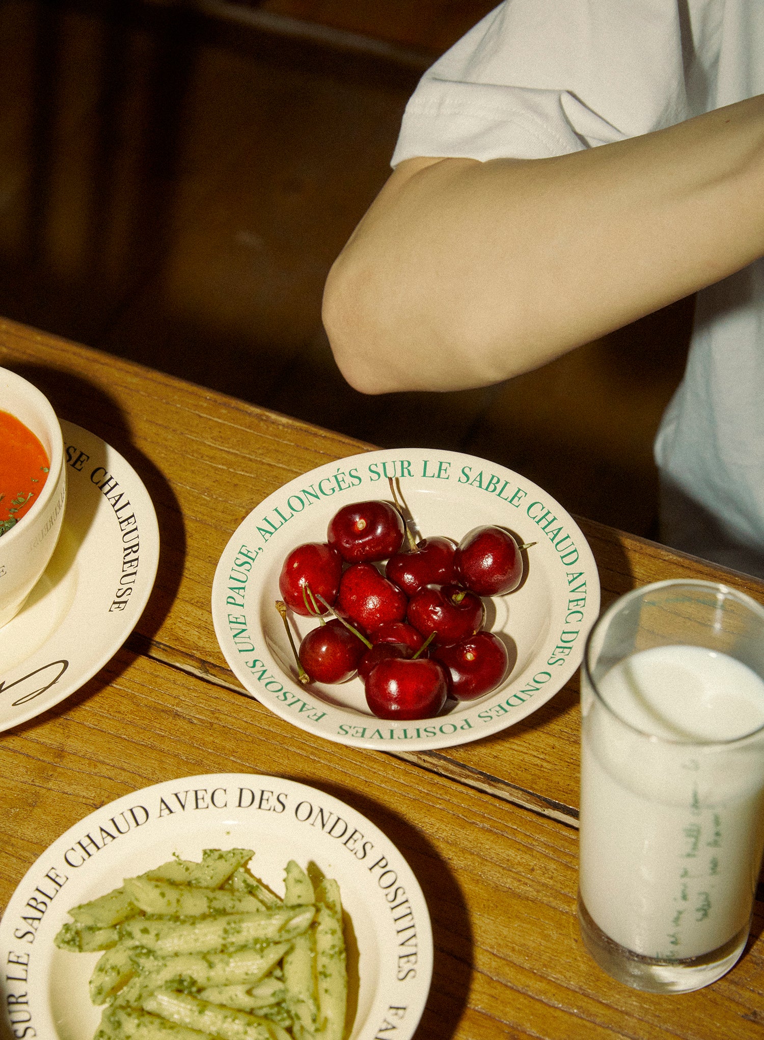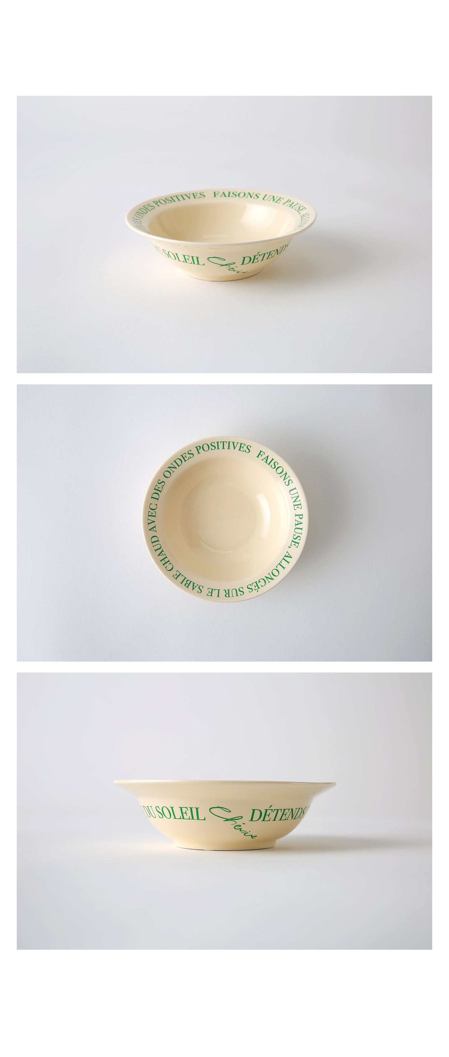Coupe Bowl features a soft creamy body color reminiscent of the laid-back French brunch, with French lettering printed on the front and top. It is a good choice for simple salads, yogurts, cereals, and other desserts.