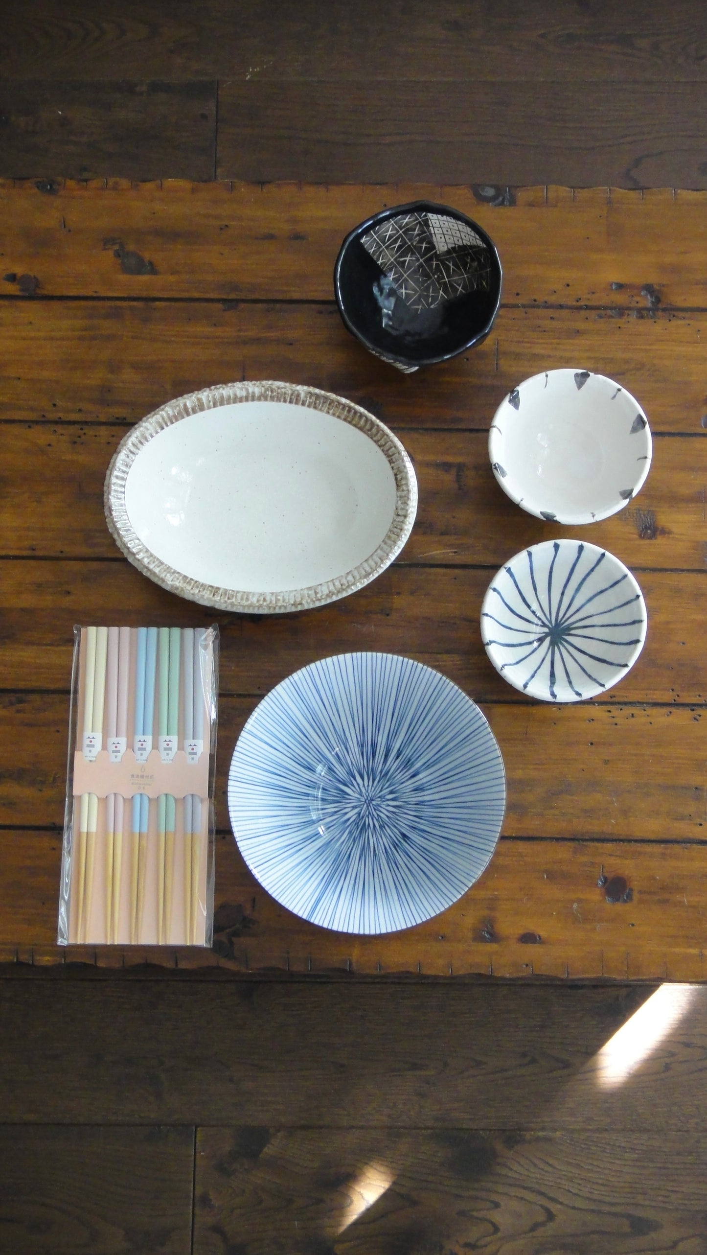 Deformed Rice Bowls available in two hand painted patterns.