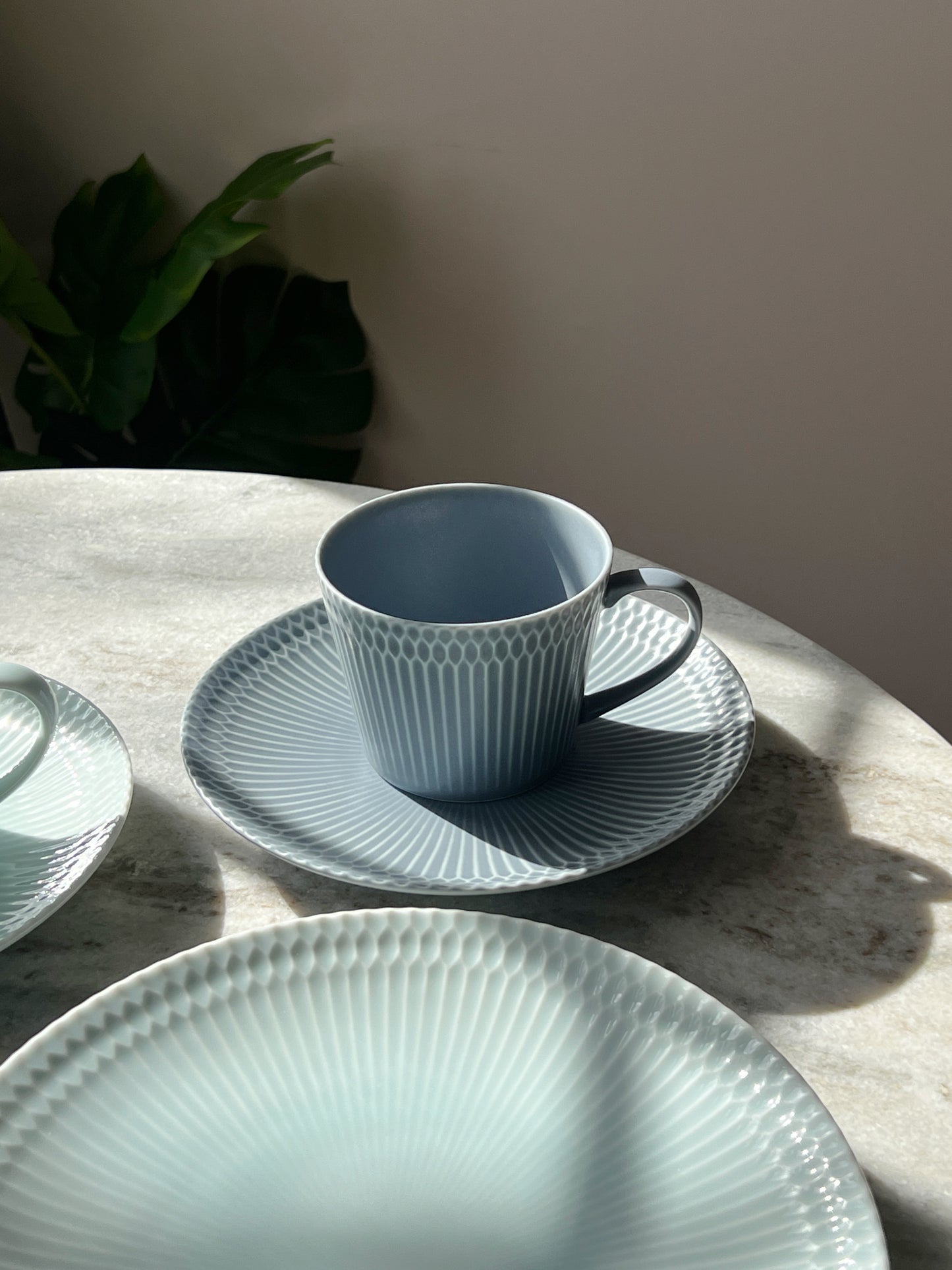 A gorgeous vessel that gently colors your dinning table with the delicate relief of the traditional sword pattern.