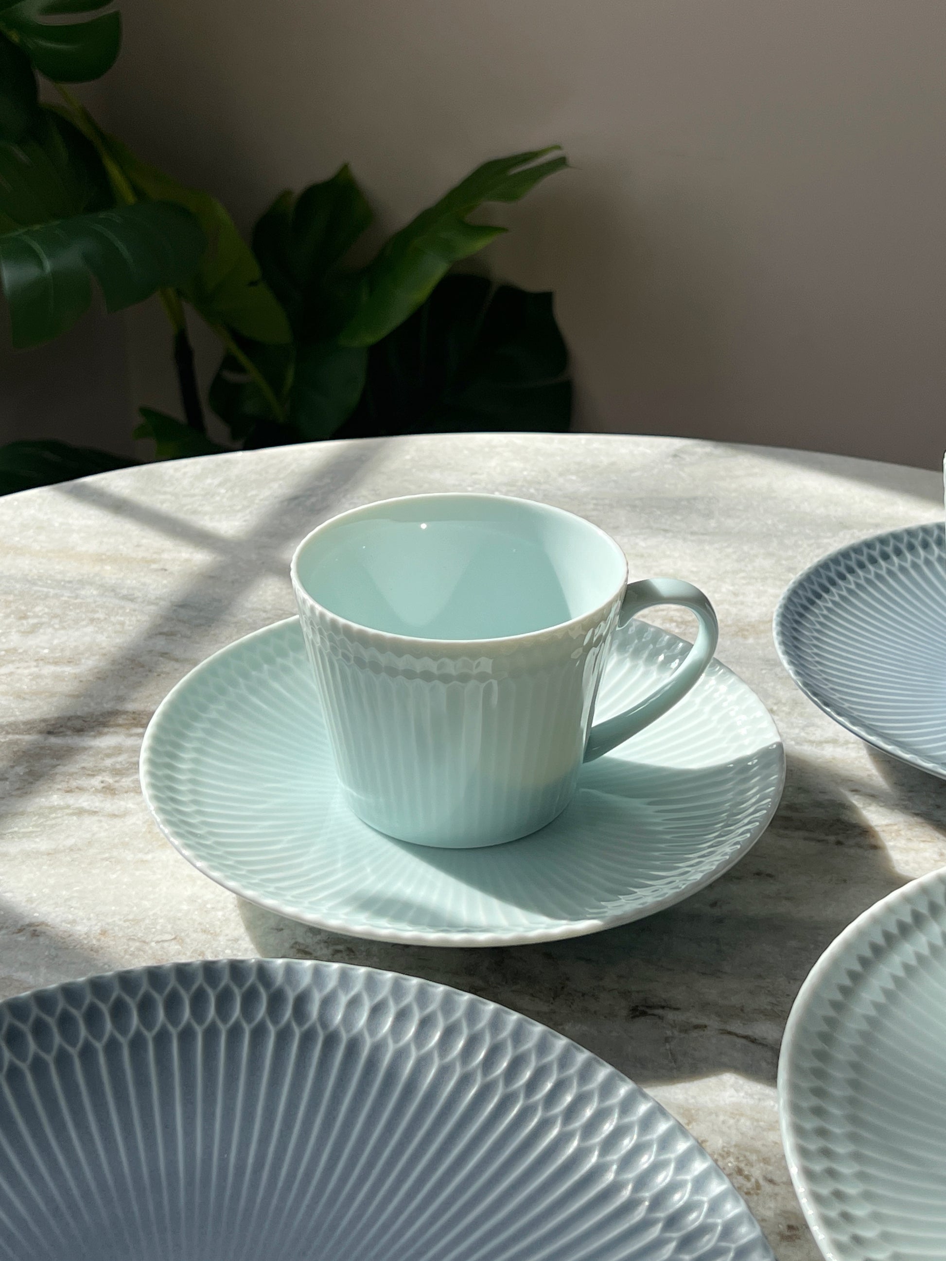 A gorgeous vessel that gently colors your dinning table with the delicate relief of the traditional sword pattern.