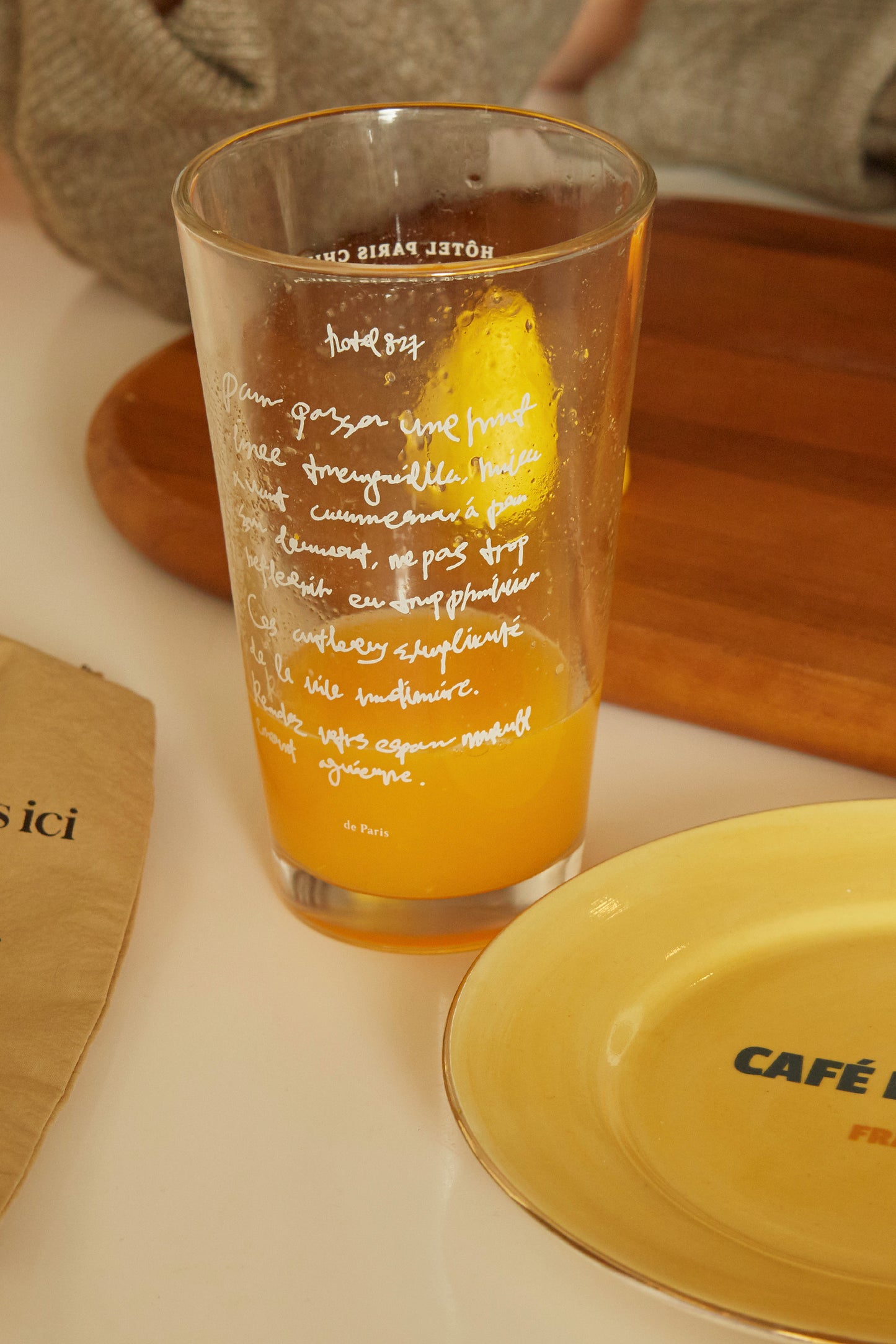 Inspired by "Our Daily Life", this Paris Chill glassware features French lettering hand-drawn by HÔTEL 827. We talk about all the little things that you may encounter in your busy daily life. Clear transparency without distortion, stable high strength, and generous size enhance practicality and create a more attractive atmosphere in the kitchen.