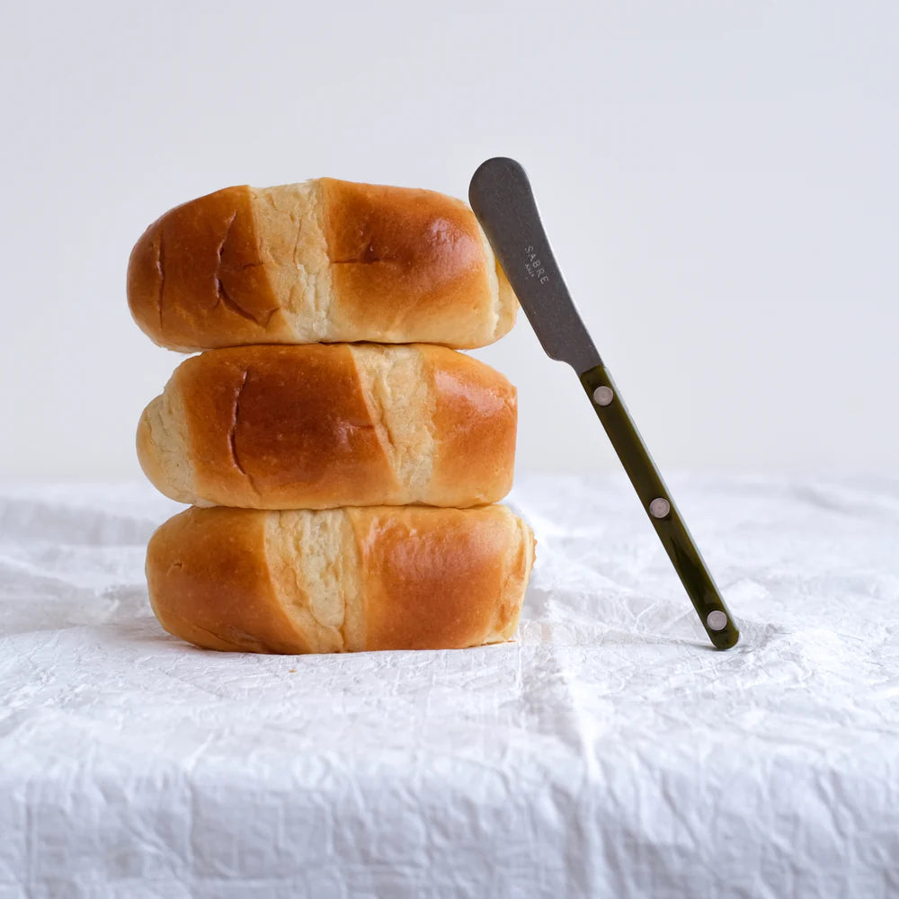 With the Bistrot collection, we were inspired by some of our favourite places: restaurants, terraces and cafés. When designing this cutlery we wanted to faithfully capture the atmosphere while adding a modern touch: the styling is simple, the rivets are visible, while the colours and materials stand out nicely. From red to blue, not forgetting the superb materials with horn or tortoise effects. Available with gloss or vintage finishes, we’re sure you’ll enjoy this collection, which is designed to be both traditional and contemporary at the same time. With its non-slicing blade, the Sabre butter spreader is used to spread soft butter, tapenades, taramas or any other foodstuffs to be spread on bread or toast.