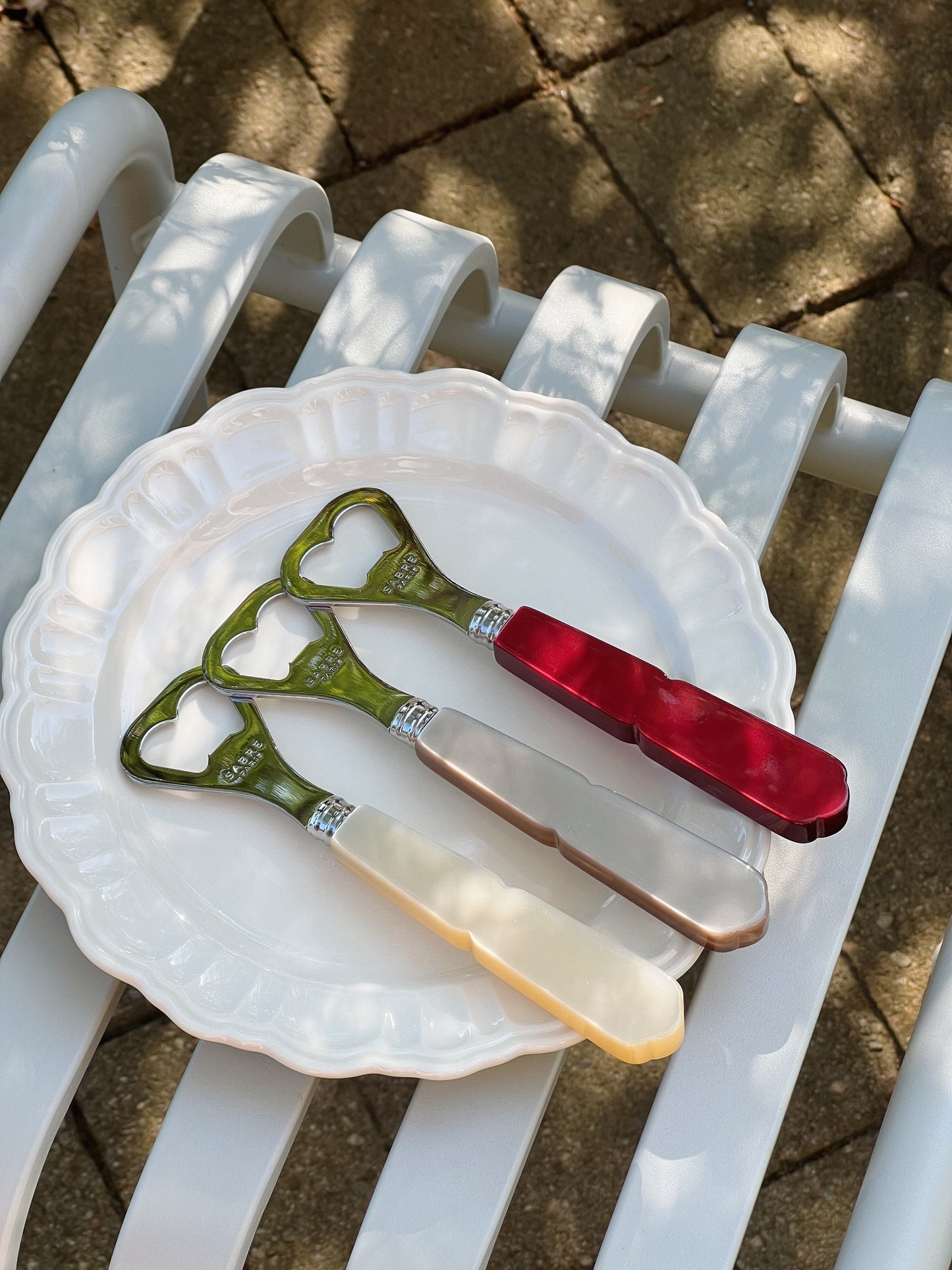 Gustave is the perfect model if you’re looking for traditional, uncomplicated cutlery. A pearly handle available in several colours, stainless steel ends featuring the Sabre signature, and a minimalistic ferrule: the combination is effective, elegant and reliable. For those few bottles requiring a little effort, the Sabre bottle opener will be your best ally.