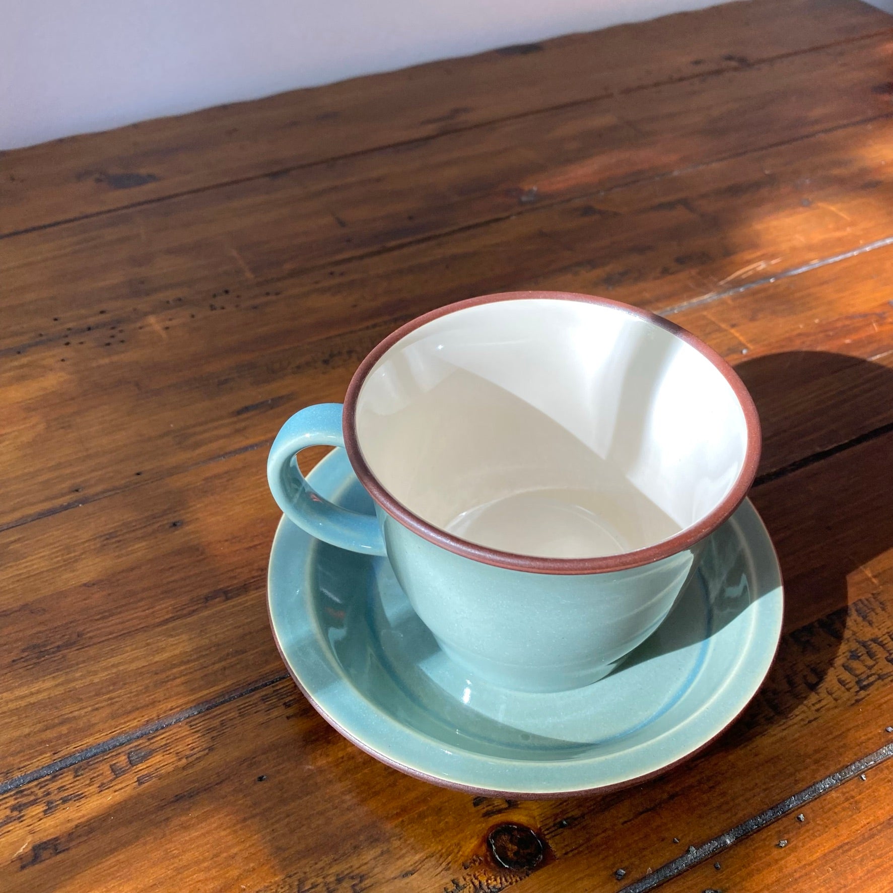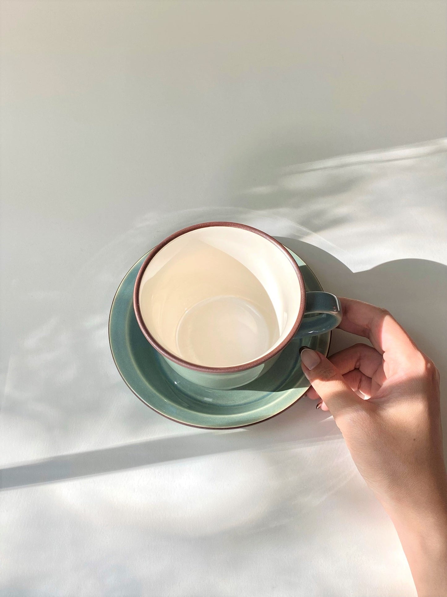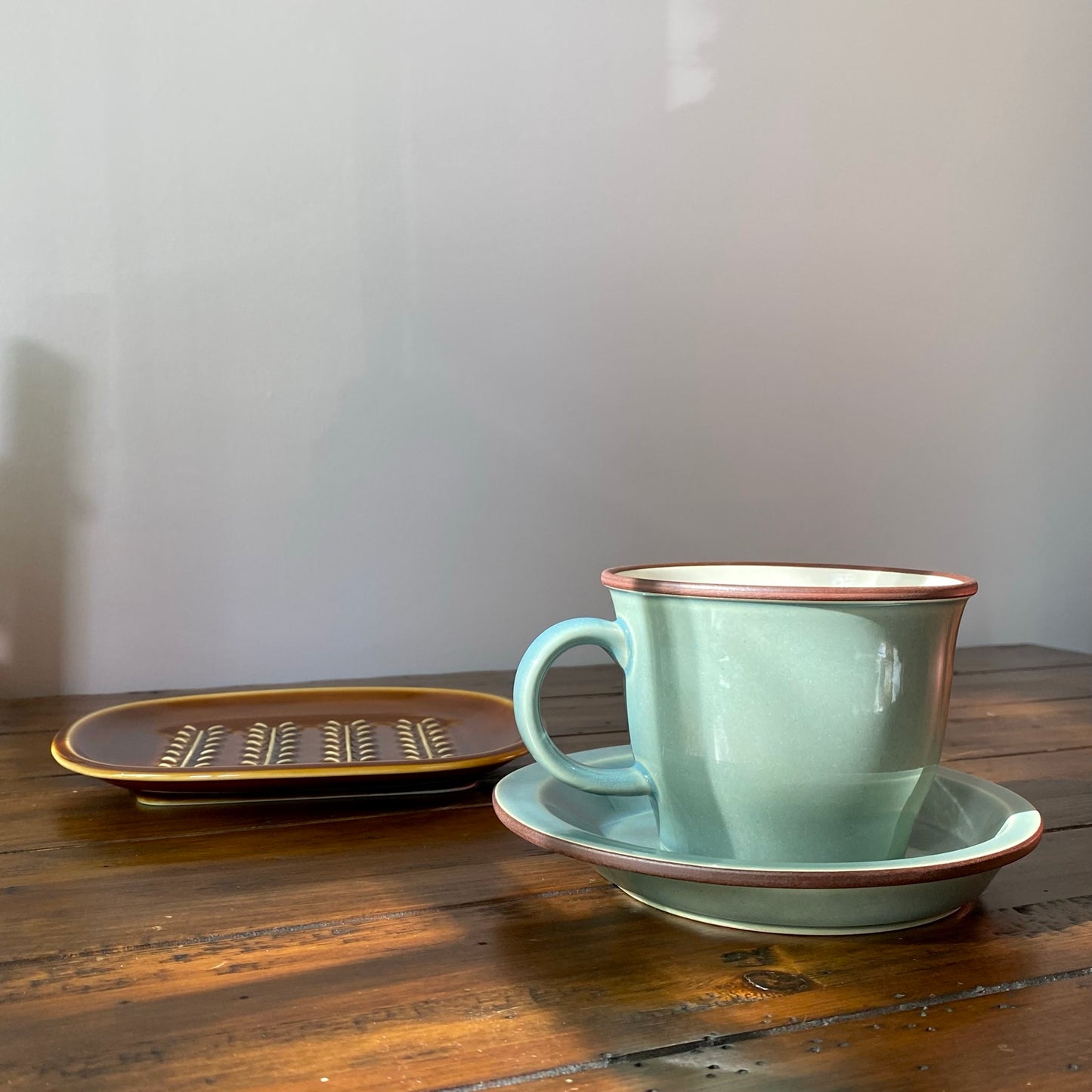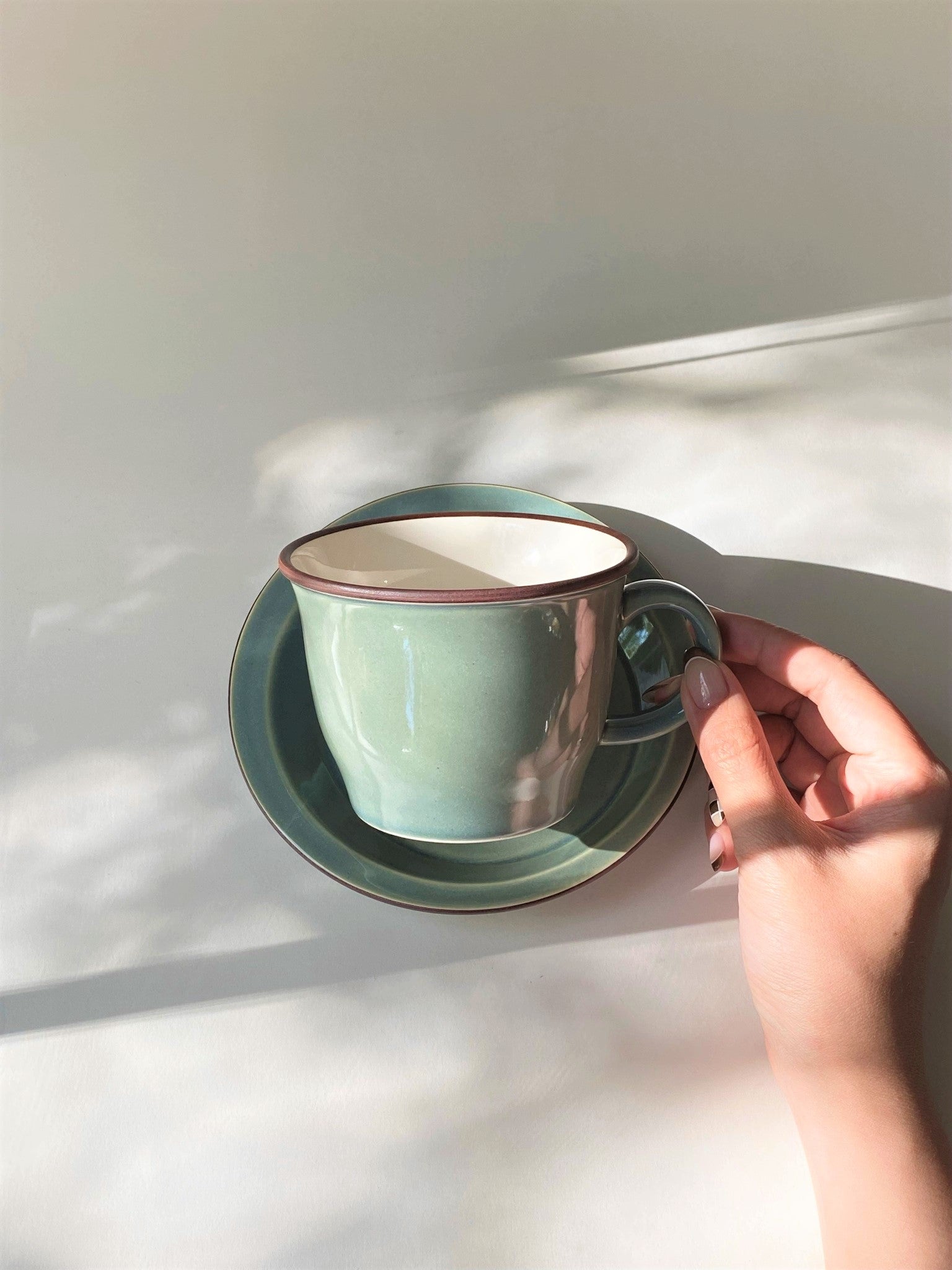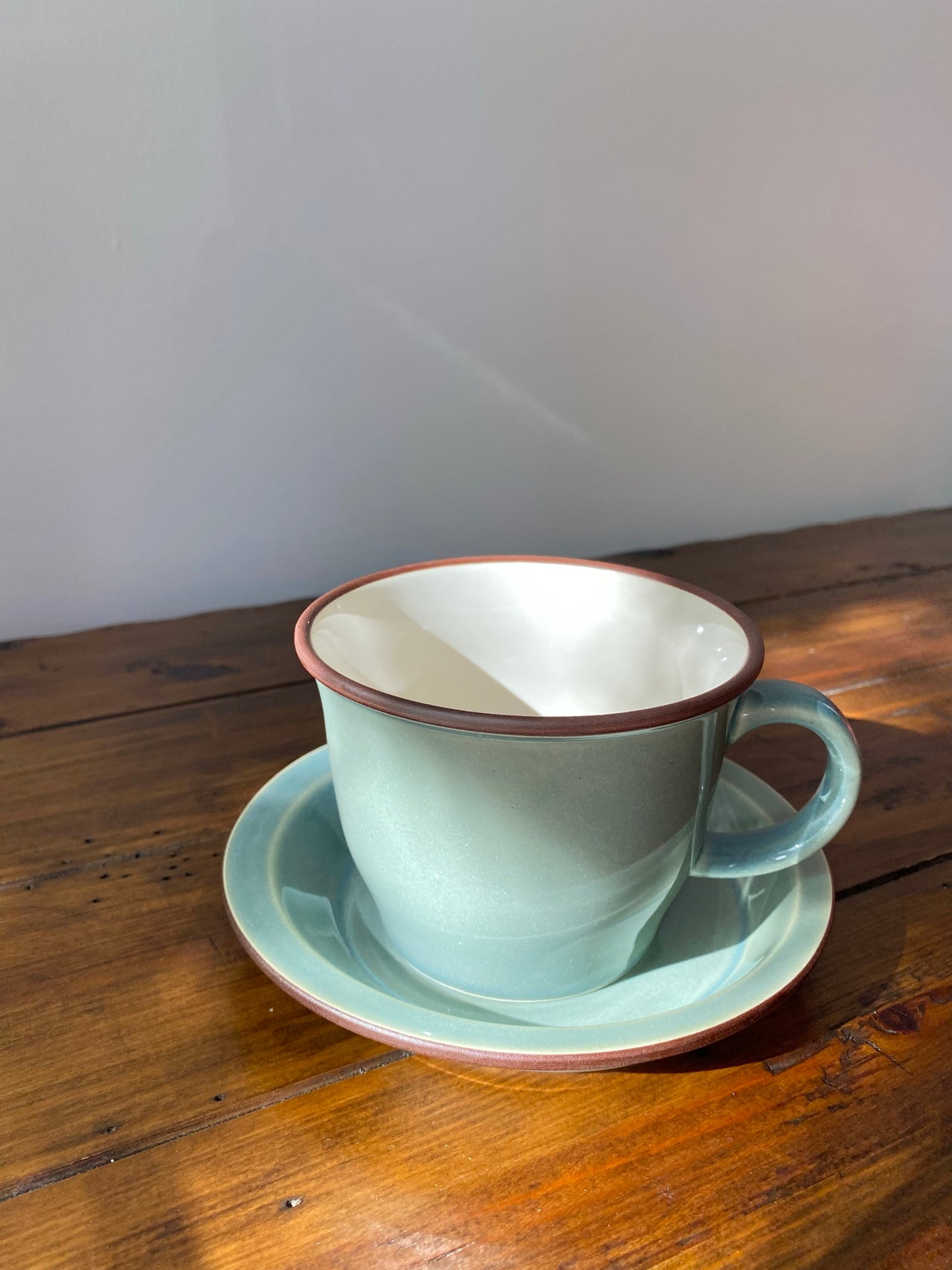 Smoky green cup & saucer Mino ware